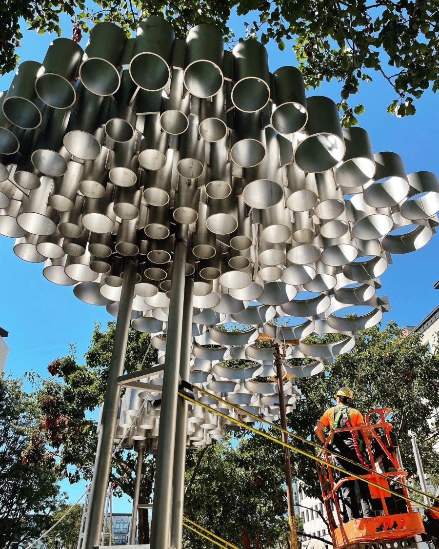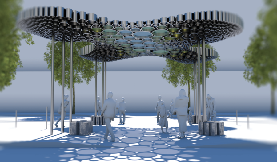 One Thousand Suns creates a bridge between built and organic environments as it works with the elements to provide shade.
