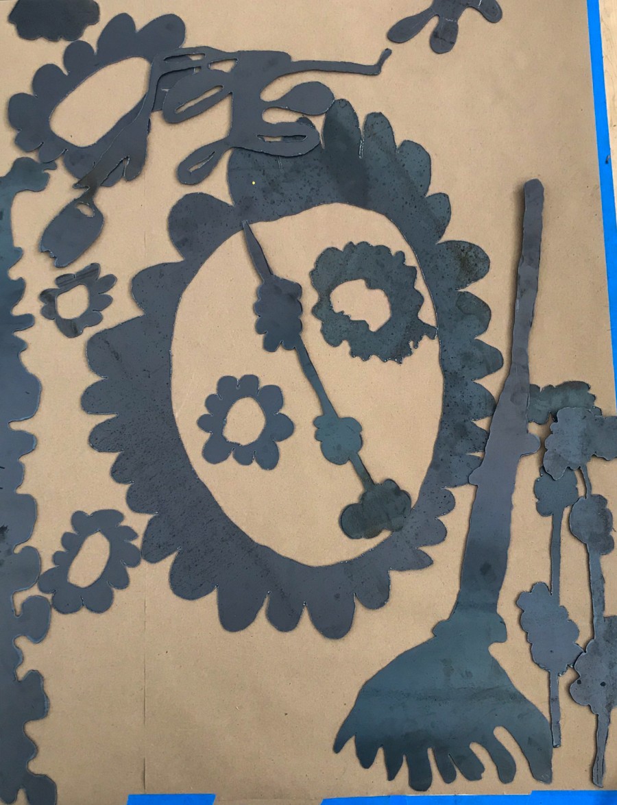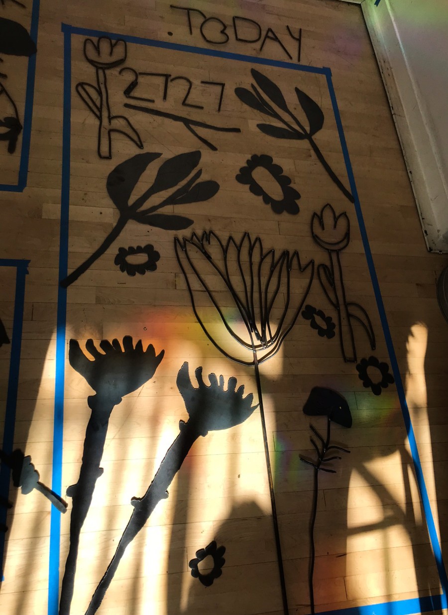 2727 California is a community arts program and artist residency. Hunter, along with artist McKeever Donovan, led a month-long workshop teaching participants (ages 8-13) to weld. They began with studies and line drawings of local flora and fauna, and translated these image making skills to metal forms. The accumulated sculptures were welded into doors for the entryway to the arts program.